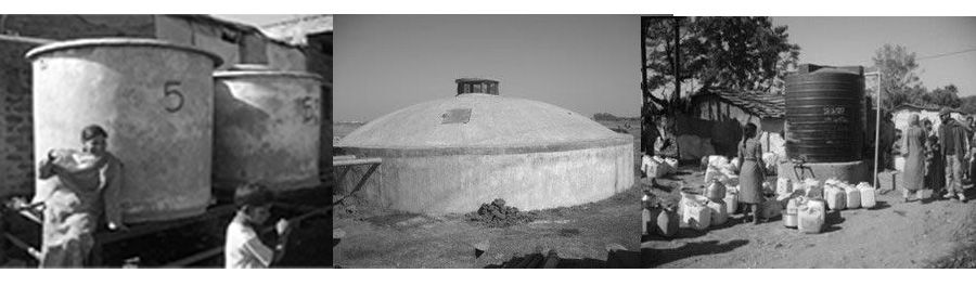 Left to right: concrete water tank, concrete sunken bore well, Duraplast water tank. Photographs appear courtesy of the Bhopal Medical Appeal.
